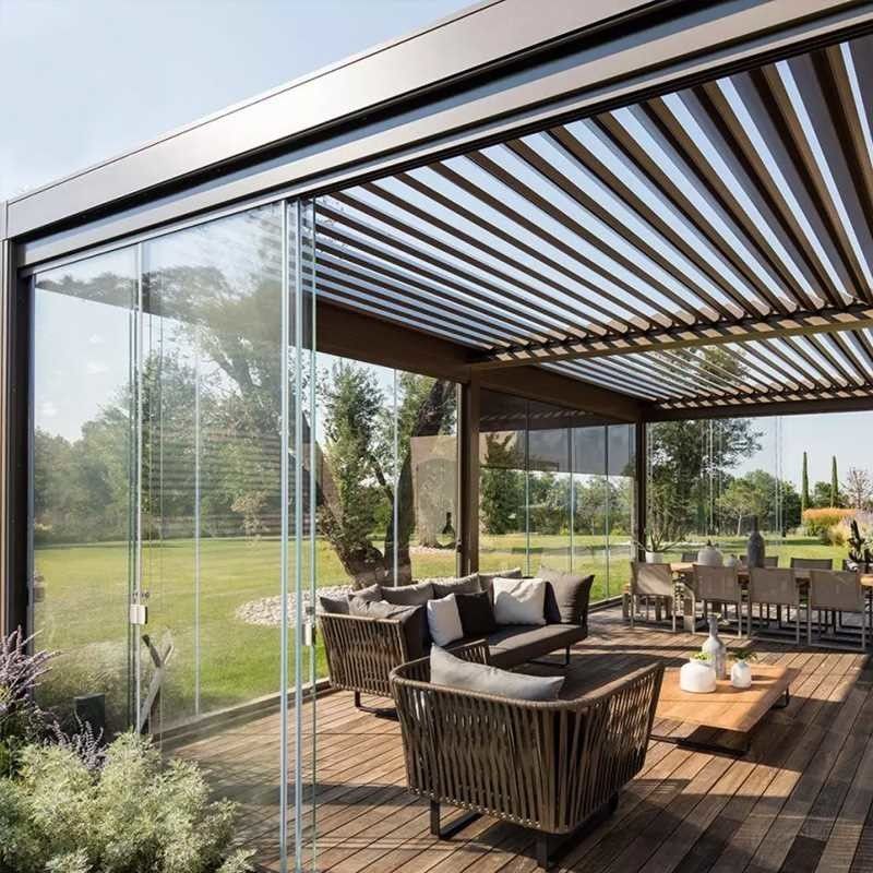 Create your ideal microclimate: open louvers for natural breezes and sunlight, or close them to reduce temperatures by 6-8°C. Add optional transparent windproof curtains, insect screens, or infrared heaters for year-round use.