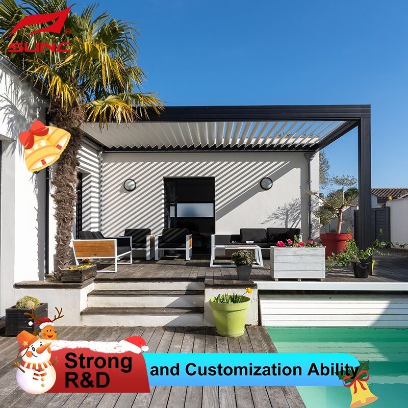 Pergola rétractable moteurisé en aluminium imperméable à l'eau avec toit en alliage d'aluminium 6063 T5 30